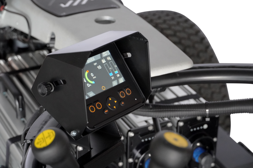 Il Combicut è dotato di due pompe a portata variabile e di due motori idraulici. Questi sono controllati singolarmente in modo meccanico tramite il manubrio e in modo elettronico tramite la leva di comando. Basta una leggera spinta a destra sul manubrio e la macchina effettua una svolta a sinistra. Con questo sistema di sterzo idrostatico, il Combicut può essere guidato in modo molto intuitivo e con poco sforzo.
