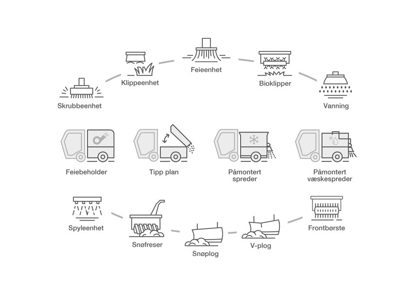 Om du er en tjenesteleverandør eller ansvarlig for et fellesskap som ønsker å både redusere dødtid og øke produktiviteten, bør du ikke gå glipp av Flexigo. Flexigo 150 betaler seg selv inn på kort tid, og takket være tilgangspanelene vil også vedlikeholdet bli ekstremt enkelt. Avslutningsvis er den ikke bare fleksibel i måten den kan brukes på, men også når det kommer til planlegging for arbeidsstyrken. Det beste du kan gjøre er å ringe Aebi Schmidt eller en av våre distributører for din region i dag og bestille en demonstrasjon.