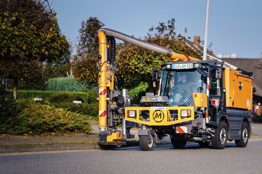 From the driver’s gullies are cleaned using a flushing and suction tube which is telescopic. Leaves, sand, gravel and other kinds of dirt are sucked up through the suction tube and collected in the machine’s hopper. The driver is not exposed to the weather conditions and does not have to perform any heavy lifting. The electrohydraulic operation and the entirely mechanised cleaning process guarantees rapid and efficient cleaning and a high level of daily coverage.