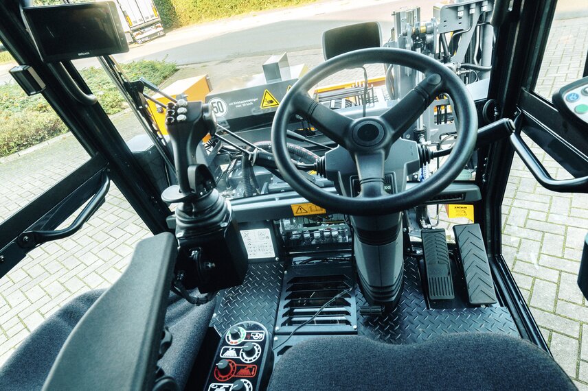 With a top speed of 50 km/h, the versatile carrier vehicle can operate over a large range. The delicately balanced, infinitely variable drive enables precise and easy working. Inside the driver’s cab, a height-adjustable and articulating steering column including a tilt function ensures a comfortable position – even for larger drivers. Ergonomically designed operating controls and a fully air-conditioned cabin guarantee a relaxed working environment. The driver controls operations manually using a joystick.