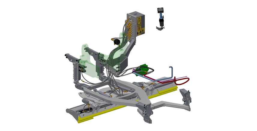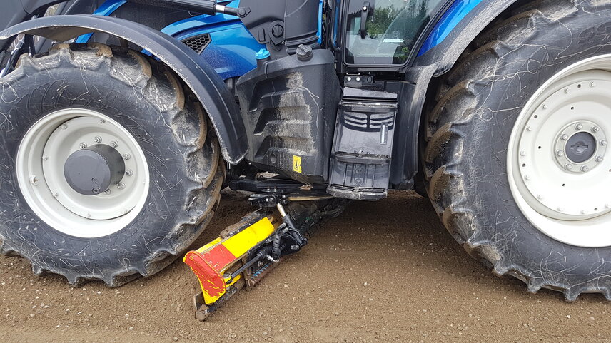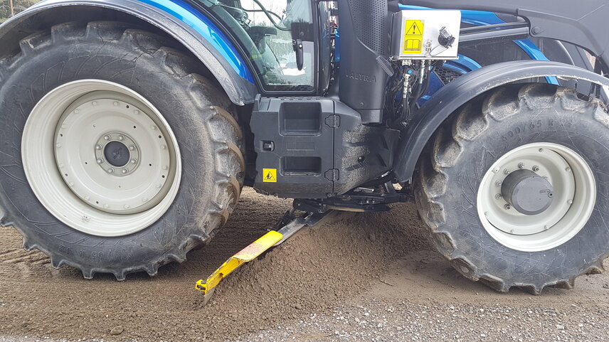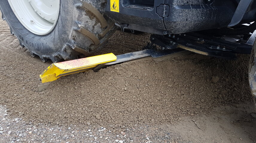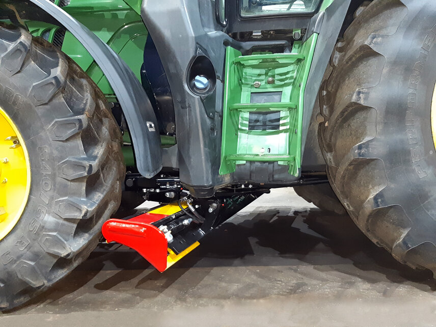 AMS 513 TR er festet til traktoren via ei kompakt underramme som gir betydelig høyde på hovedskjæret med store teleskopiske utskyv.