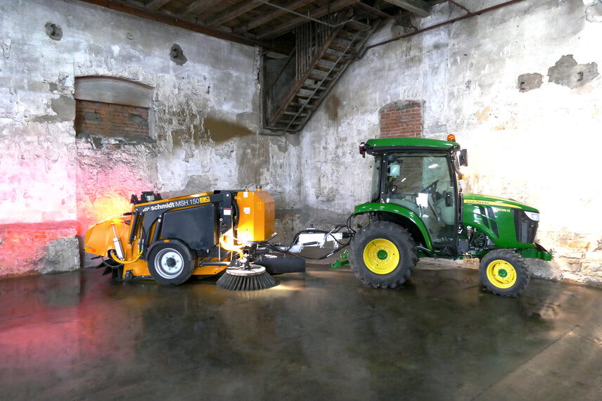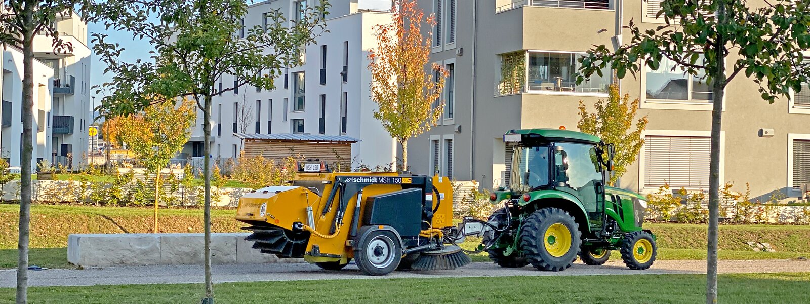 The sweeping unit of the MSH consists of two towed disc brushes with drive via the PTO of the tractor. The hydraulic lifting and lowering of the disc brushes can be controlled via the control panel. The MSH has a rear-mounted, collision-protected roller brush, while the adjustable roller brush cover ensures optimal sweeping results.