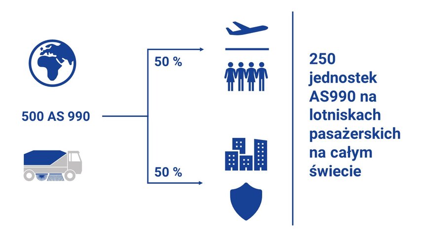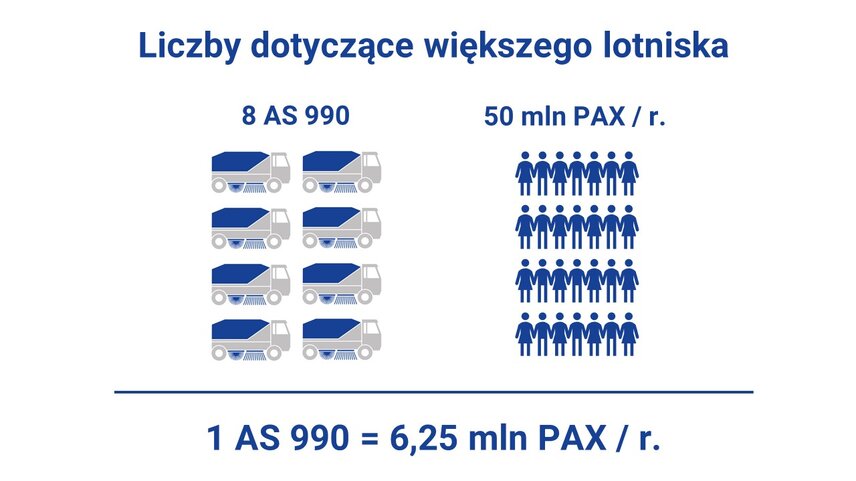 Załóżmy, że połowa z tych 500 maszyn jest używana na lotniskach pasażerskich, a większe lotniska, obsługujące około 50 milionów pasażerów rocznie, korzystają z ośmiu wysokowydajnych zamiatarek każdego dnia. Oznacza to, że jedna maszyna obsługuje starty i lądowania 6,25 miliona pasażerów rocznie. Ekstrapolując tę liczbę na wszystkie maszyny, uzyskujemy oszałamiającą liczbę 1,5 miliarda pasażerów rocznie.