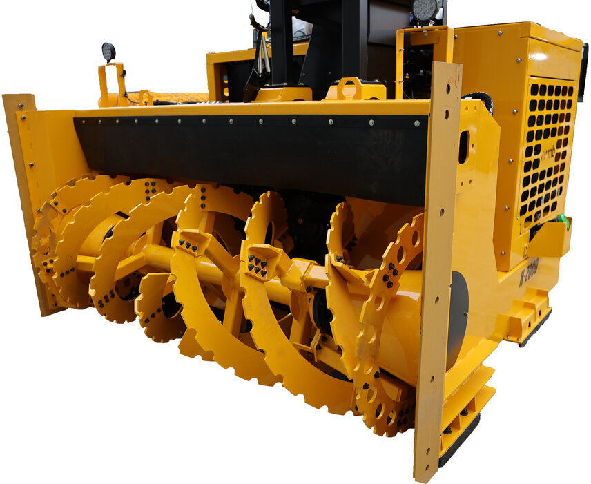 Equipped with a 115", 120", and 128" cutting width and a height of 58 inches, the H2000 Loader effectively handles substantial snow depths. Its 46-inch diameter impeller, designed with replaceable blades, enhances durability and performance across various snow conditions.