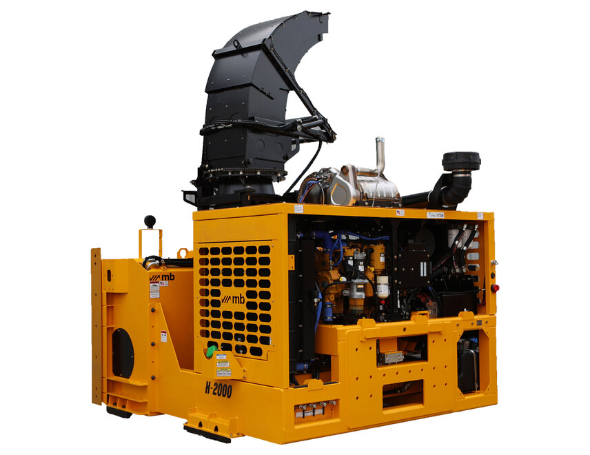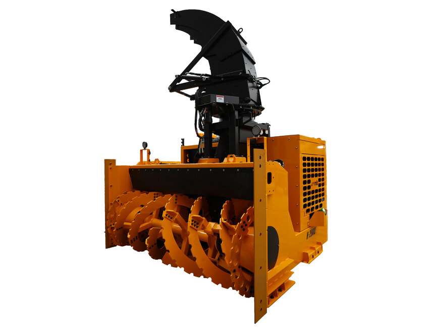 The H2000 Loader snow blower is engineered for efficient snow removal, capable of clearing up to 1,500 tons per hour. Its hydrostatic drive system for both the ribbon and impeller, featuring infinitely variable speed pumps and fixed displacement motors, ensures precise control and reliable operation.