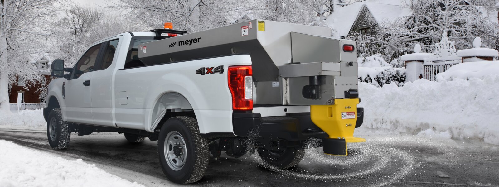 The Meyer Base Line Insert Hopper Spreaders come in two configurations, each designed for efficient material handling. The BL-600 features a removable stainless-steel spinner with adjustable baffles. The BL-800 features a lightweight poly spinner assembly with formed handles and pins, making removal for maintenance and storage a breeze. Both spinner types allow for precise control over the spread pattern, with up to a 30-foot range.