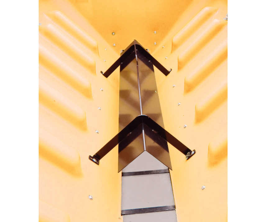 Designed for optimal efficiency, the Polyhawk’s polyethylene hopper features an inverted-V to prevent material bridging and ensure a consistent material flow. Available in both 6-ft and 8-ft lengths, the hopper accommodates truck sizes from ¾-ton to 1 ton in size. The hopper is equipped with adjustable baffles and a largest-in-industry 13-inch spinner to precisely control material deployment from 4 to 40 feet in range. A top screen breaks up material clumps, which protects the drag chain, and the swing-up spinner reduces downtime by simplifying cleanout and storage.