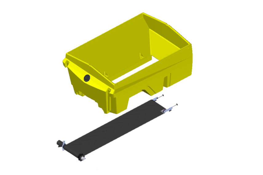Jako system dozowania można wybrać przenośnik taśmowy lub ślimakowy. W przypadku wersji ciągnionej dozowanie może odbywać się wyłącznie za pomocą przenośnika taśmowego. Zastosowano tu ciągłą profilowaną taśmę przenośnika w kształcie litery „V”, która porusza się po płycie ślizgowej i dzięki temu nie pozostawia żadnych odcisków w zbiorniku. Zasuwa dozująca ze zintegrowanym rozdrabniaczem grudek zapewnia wysoką dokładność dozowania. Przenośnik ślimakowy posiada zmienny gwint, dzięki czemu gwarantuje równomierne opróżnianie zbiornika. Posypywarka napędzana jest za pomocą silnika hydraulicznego.