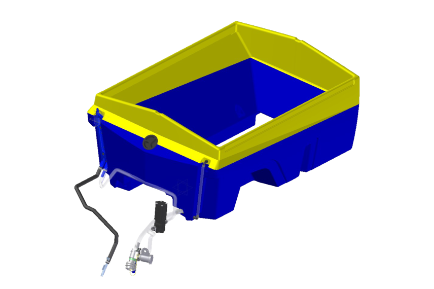 Wyposażenie do soli zwilżonej obejmuje okrągły zbiornik na solankę ze wskaźnikiem poziomu oraz pompę do solanki (pompa zębata o wydatku 100 l/min) z zabezpieczeniem przed suchobiegiem. Do napełniania i opróżniania zbiornika na solankę służy zamontowane z tyłu przyłącze Storz C. Po załączeniu instalacji solanki (FS 30) następuje automatyczne ograniczenie materiału suchego oraz optymalizacja nastawy systemu rozprowadzania stosownie do zmienionego składu środka do odladzania. System uzyskuje wysoki poziom dokładności dzięki zintegrowanym czujnikom, które porównują wartości rzeczywiste i zadane obwodów sterowania.