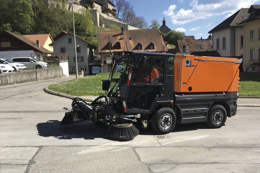 Przestronna kabina wyposażona jest w wysokiej jakości izolację akustyczną i izolację drgań (72 dB (A)). Sięgająca aż do podłogi szyba przednia oraz okienko kontrolne w podłodze kabiny kierowcy zapewniają optymalny widok na zespół szczotek i ssawkę. Doskonała widoczność we wszystkich kierunkach przyczynia się do komfortowej atmosfery pracy, a tym samym wspiera bezpieczeństwo użytkowania maszyny w ruchu drogowym. Stanowiąca wyposażenie standardowe klimatyzacja o dużej wydajności zapewnia wygodne warunki pracy w odpowiedniej temperaturze. Świeże powietrze zasysane jest i filtrowane z tyłu kabiny. Funkcję filtra powietrza w kabinie pełni filtr przeciwpyłkowy.