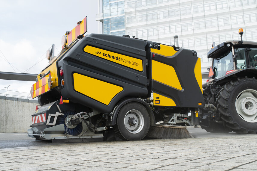 Zespół szczotek zamiatarki Wasa 300+ składa się z dwóch ciągnionych i zabezpieczonych przed najechaniem szczotek talerzowych z odpornym na ścieranie napędem bezpośrednim przy użyciu silnika hydraulicznego. Za pomocą pulpitu sterującego można kontrolować hydrauliczne podnoszenie i opuszczanie szczotek talerzowych, w tym nacisk hydrauliczny szczotek na podłoże. Zamiatarka Wasa 300+ wyposażona jest dodatkowo w szczotkę walcową montowaną z tyłu maszyny, napędzaną w sposób bezpośredni przy użyciu silnika hydraulicznego. Innowacyjna, regulowana osłona szczotki walcowej zapewnia optymalny efekt zamiatania.