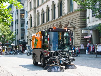 En helt elektrisk, kompakt och samtidigt robust sopmaskin för daglig rengöring i innerstäder. Den uppdaterade hytten är modern och erbjuder en rymlig, överskådlig och bekväm arbetsplats med högsta komfort. Det logiskt uppbyggda manöverkonceptet gör det enkelt och intuitivt att arbeta.
